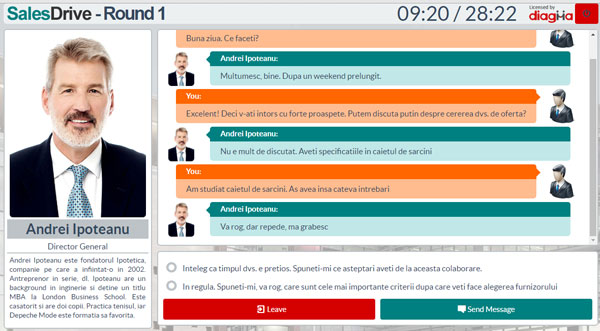 Prin programul SalesDrive încercăm să venim în sprijinul celor interesați de dezvoltarea abilităților comerciale cu o abordare inedită, bazată pe învățare experiențială. Structurat ca un workshop interactiv cu durata de două zile, SalesDrive oferă participanților posibilitatea de a parcurge nemijlocit etapele unui proces complex de vânzare, asistați de aplicația software dedicata SalesDrive.